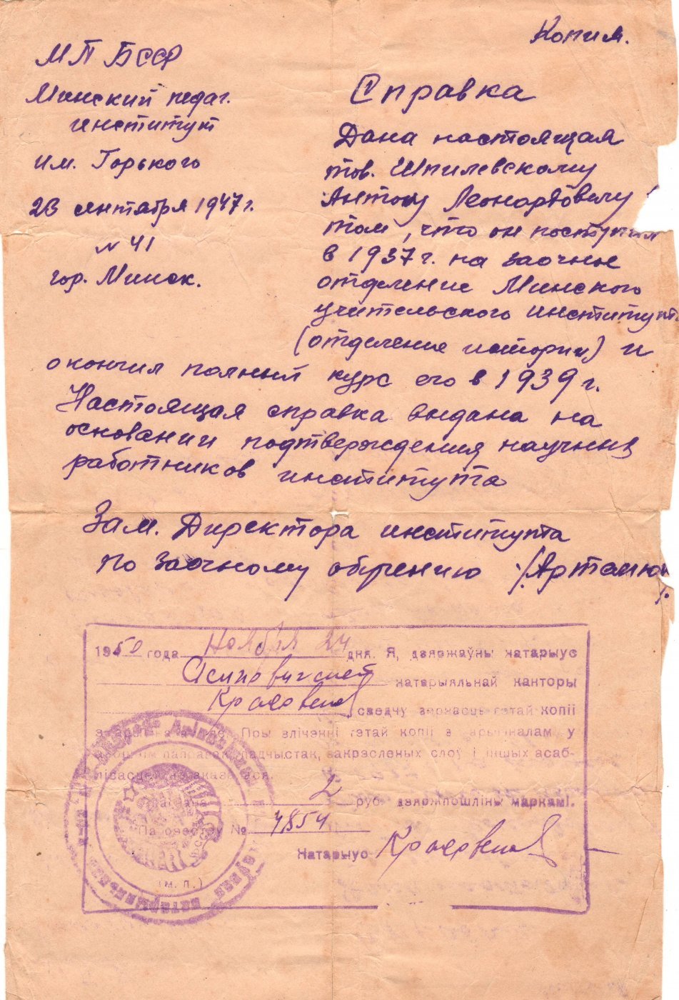 В 1947 г. супруги вернулись в Беларусь. Антон работал в школе в Вязовнице: сначала учителем, потом занял должность директора. Всего педагогический стаж Антона Леонардовича составляет 60 лет.